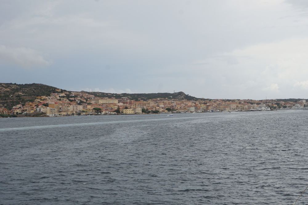 Kurzentschlossen haben wir danach den Rucksack mit Getränk und Zwiebelfocaccia gefüllt, sind zum Hafen marschiert und haben Tickets für die Fähre zur Insel Maddalena gekauft. Das eigentlich schon abgelegte Schiff war noch da und wir konnten an Bord. Die Überfahrt dauert eine reichliche Viertelstunde.