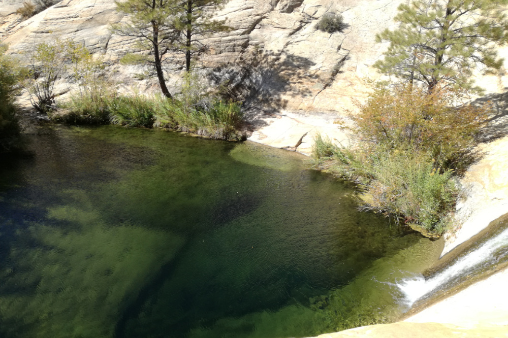 An das erste Wasserbecken schloss sich ein kleines Wäldchen an und direkt dahinter versteckte sich das zweite, tiefere Bassin mit einem kleineren Wasserfall. Wir machten ein Apfel-Cracker-Picknick und genossen das Wasserrauschen und die Einsamkeit.