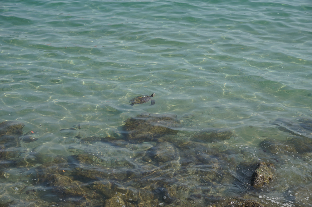 Den Bogengang am Wasser nennt man hier übrigens Corniche, hübsch zum Flanieren. Das Wasser im Hafen ist überraschend sauber. Es gibt viele Fische (sogar eine Muräne haben wir gesehen), Krabben und Krebse. Aber das Highlight waren drei Schildkröten.