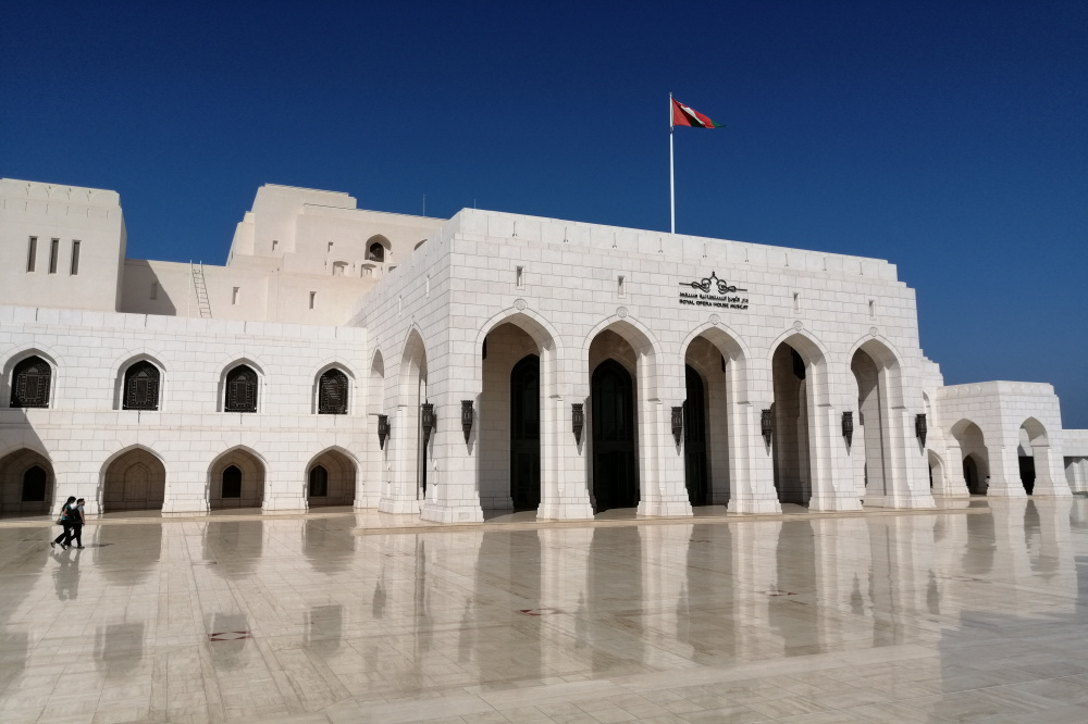 Im Hotel haben wir Badezeug zusammen gepackt, sind aber erstmal zum Royal Opera House gefahren. Ein architektonischer Traum aus hellem Stein, die Decken in den Bogengängen aus Holz und wunderschöne orientalische Kronleuchter ohne jedes Blingbling. Direkt angegliedert ist eine Mal für Schmuck, edle Parfums, sauteure Uhren, Kunst und Weihrauch, um den man hier nirgends drumherum kommt.
