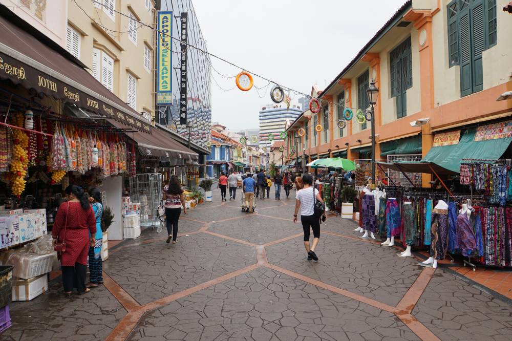 Zuerst sind wir nach Little India gefahren. Das ist das Viertel mit der größten Dichte an indischen und pakistanischen Einwohnern. Dementsprechend laut und bunt ist das Treiben. Hier ist von der strikten und cleanen Ordnung Singapurs nicht mehr so viel zu sehen. Wir bummelten durch die Strassen und bestaunten die opulenten Auslagen vieler Geschäfte: Obst und Gemüse, Gold und protzige Juwelen und duftende Blütenstände. Dann sind wir in die örtliche Markthalle gegangen. Die obere Etage ist ein Shop in Shop System von Schneidern mit einer leuchtenden Vielfalt an Stoffen und Kleidern. Im Erdgeschoss befindet sich der Lebensmittelmarkt mit allem was das Herz begehrt: Obst, Gemüse, Fleisch und vor allem Fisch.