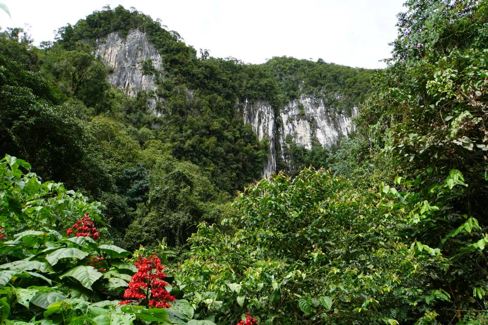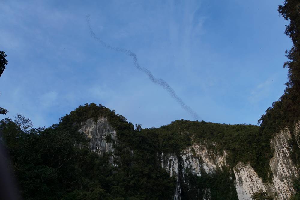 Unser Guide Maria erwartete uns am Flughaffen und brachte uns zur Registrierung ins Headquarter. Danach brachen wir sofort zu einer 3 km langen Wanderung durch den NP auf und erkundeten dabei zwei Höhlen: Die Langs Cave mit vielen Stalakmiten und Stalaktiten in unterschiedlichsten Formen und die Deer Cave mit Millionen von Fledermäusen und genausovielen Kakerlaken auf dem Guano. Wieder draußen haben wir uns auf die Beobachtungsplattform gesetzt und zugesehen, wie die BATS in riesigen Spiralformationen am Abend die Höhle verlassen.