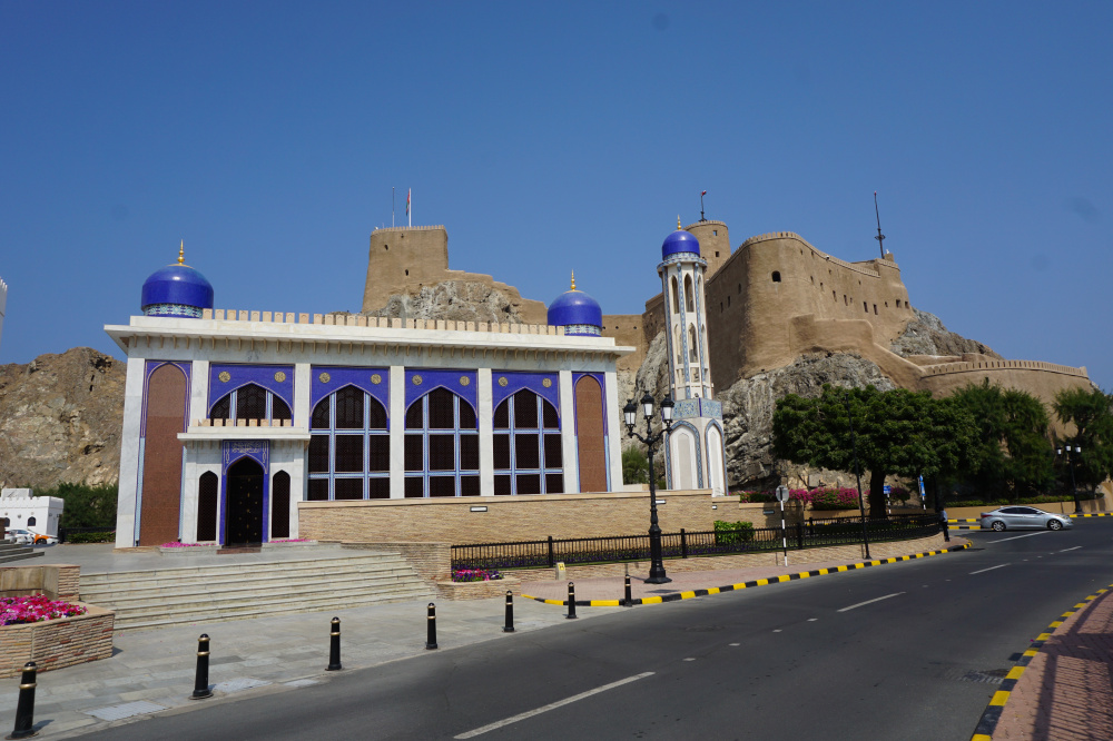 25 Minuten braucht man bis Old Maskat und man parkt auf einem der vielen kostenlosen Parkplätze. Viel zu sehen gibt es nicht wirklich. Der Herr Sultan hat das Meiste abreißen lassen, um sich einen Prachtpalast zu bauen. Der dient nur zur Angabe und für Staatsempfänge. Des weiteren gibt es zwei Forts, diverse Moscheen und zwei Museen. Lediglich einige wenige Originalhäuser mit dem typischen Luftkühltürmchen sind erhalten geblieben.