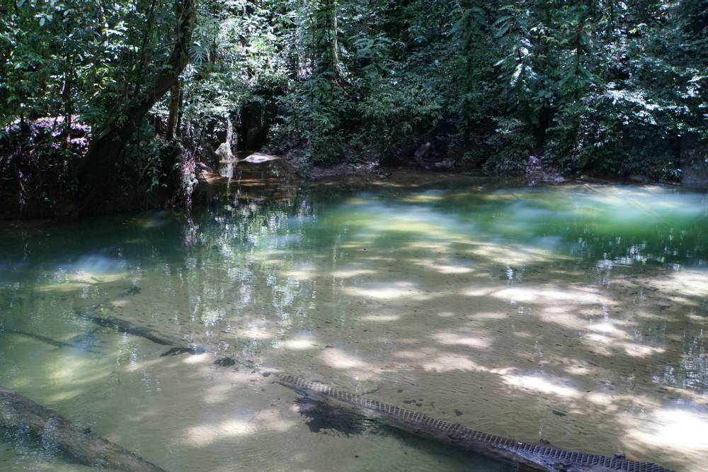 Wieder draußen habe wir uns kurz in einem von der Natur angelegten Pool im Fluß erfrischt.