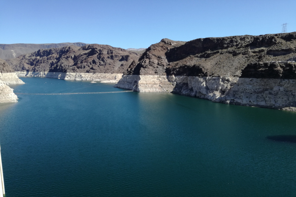 Nachdem wir nach einigem Herumirren den richtigen Freeway gefunden hatten, führte uns der Weg an Boulder City vorbei zum Lake Mead und seiner gigantischen Staumauer.
