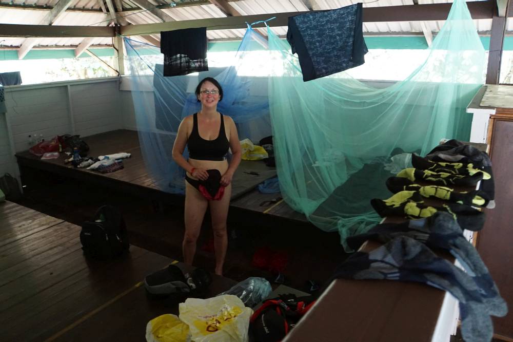 Zurück im Camp Wäsche aufhängen, duschen und Mückentötolin auftragen. Zum Abendbrot gab es Gemüse, Reis und Schlange. Nee nee. Leider hat uns Christopher veräppelt. Es war nur sehr festes Fischfilet.