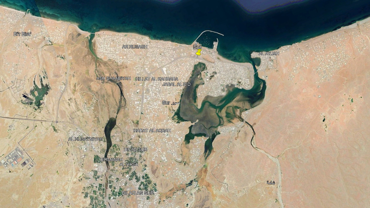 Eine halbe Stunde außerhalb von Sur liegt das Wadi Shab. Eines der wenigen Wadis, die nach dem Sommer Wasser in ausreichender Menge führen. Deshalb beliebt bei Einheimischen und Touristen zum Baden und bei Bauern für den Anbau von Papaya und Bananen.