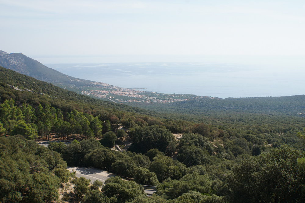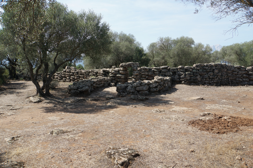 Aber zuerst mussten wir uns die Serpentinen ins Gebirge empor schrauben und haben dabei einen Blick auf unseren Badeort von oben geworfen. Nach einem Bogen um Dorgali erreichten wir das erste Ziel: Serra Orrios, eine alte Siedlung der Nuraghen mit den dafür typischen runden Hütten. Man konnte ebenso Brunnen und zwei Megaron-Tempel bestaunen. Alles umrahmt von Korkeichen und Olivenbäumen.