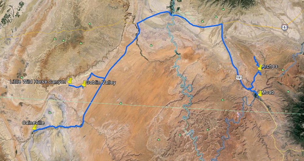 Der dritte geplante Punkt (Little Wild Horse Canyon) fiel aus Zeitgründen aus.