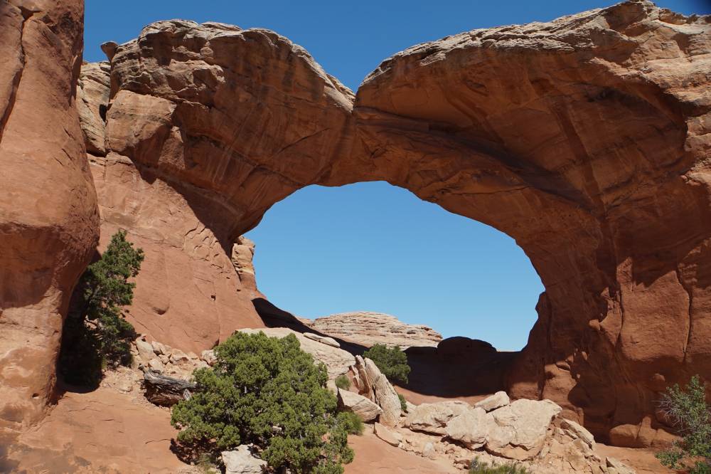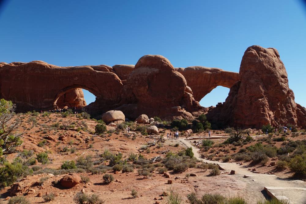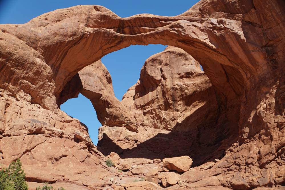 Tagespunkt eins führte uns in den nur wenige Kilometer entfernten Arch National Park. Lauter tolle, durch Wind und Wetter geformte Steinbögen. Leider auch hunderte Japaner. Komisches Volk - dazu zu Hause mehr. Es gab viel tolle Aussichtspunkte und einige hübsche Wanderwege. Gott sei Dank wandern Japaner nicht (ein Selfi reicht). Da wir alles ansehen wollten, haben wir etwas die Zeit vergessen. Um 3 Uhr haben wir uns endlich vom Acker gemacht. Der Weg bis zur nächsten Attraktion betrug mehr als 200 km.