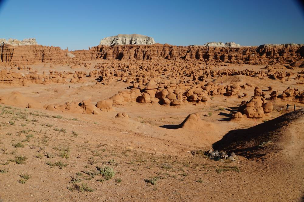 Das Ziel hieß: Goblin Valley State Park. Da wir uns nichts darunter vorstellen konnten, hatten wir keine Ahnung, was uns erwartete. Nun ja, es sah aus wie Schlumpfhausen in braun. Lauter putzige pilzförmige Gebilde. Wir haben uns köstlich amüsiert.