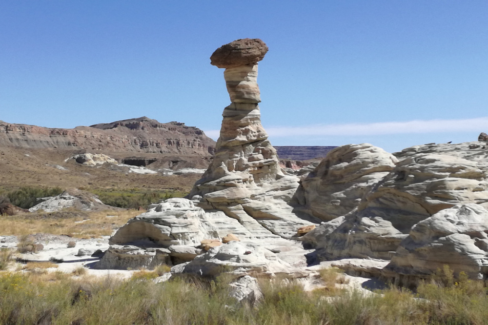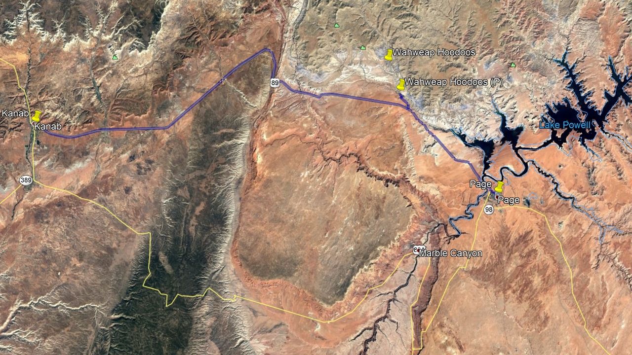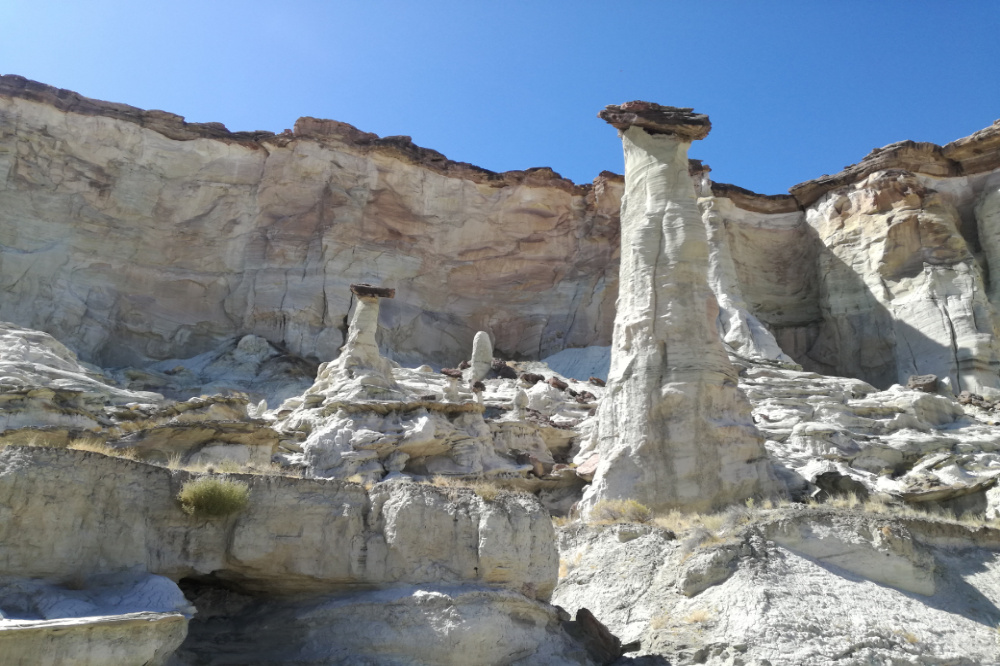 Wir wollten die Wahweap Hoodoos oder auch Geisterhoodoos besuchen. Kurz vor Page biegt man in Bigwater auf eine unbefestigte Straße und parkt direkt an einem ausgetrockneten Flussbett.