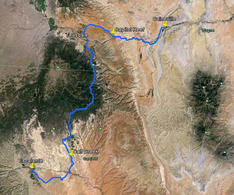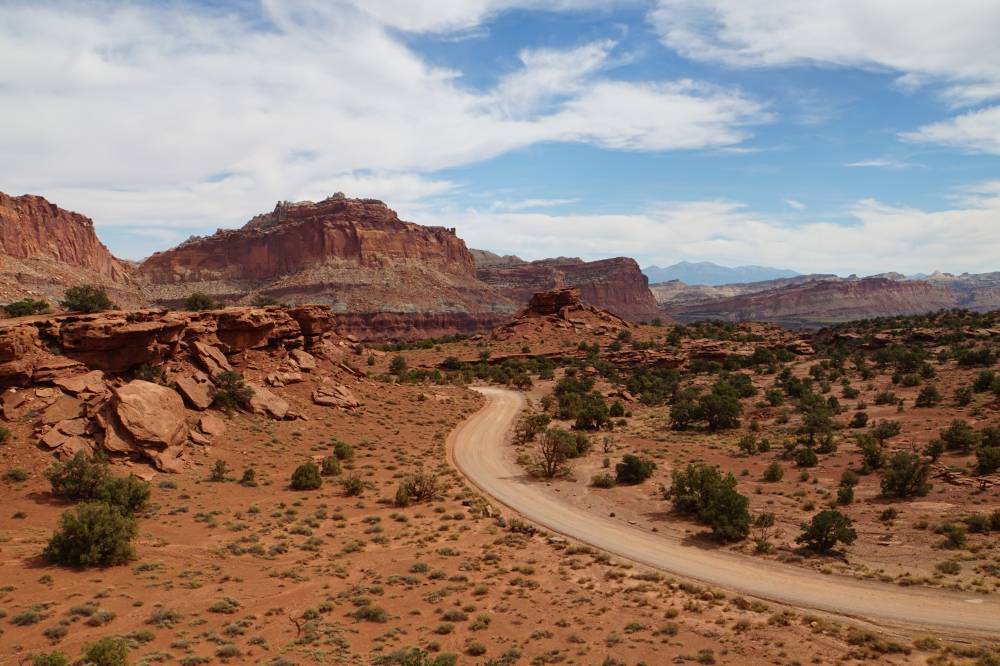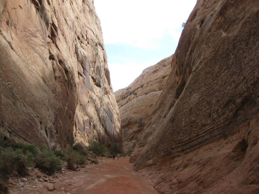 Das war heute der Wandertag schlechthin. Nach einer ruhigen Nacht und etwas Buttertoast ging es in den Capital Reef National Park. Vom freundlichen Ranger mit einer Wanderkarte ausgestattet, ging es nach einer wilden Offroad-Fahrt zum Schluchtenwandern in die Capital Gorge. Hin- und Rückweg betrugen etwa 5 km. Der letzte halbe Kilometer war ein steiler Aufstieg zu zwei hübschen Dellen im Fels (Tanks) voll mit kühlem Wasser.