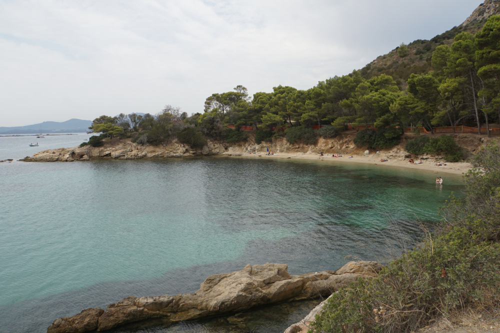 Ausgerüstet mit Snack in Form von Grissini und Wasser, haben wir den Parkplatz am anderen Ende des Städtchens angepeilt. Dann sind wir einen Uferweg entlang gelaufen, um zu zwei weiteren kleinen Badebuchten zu gelangen. Dort angekommen mussten wir feststellen, dass der eine Beach gesperrt war und der andere überfüllt. Also haben wir kurz Rast gemacht und unsere Brotstangen geknuspert.