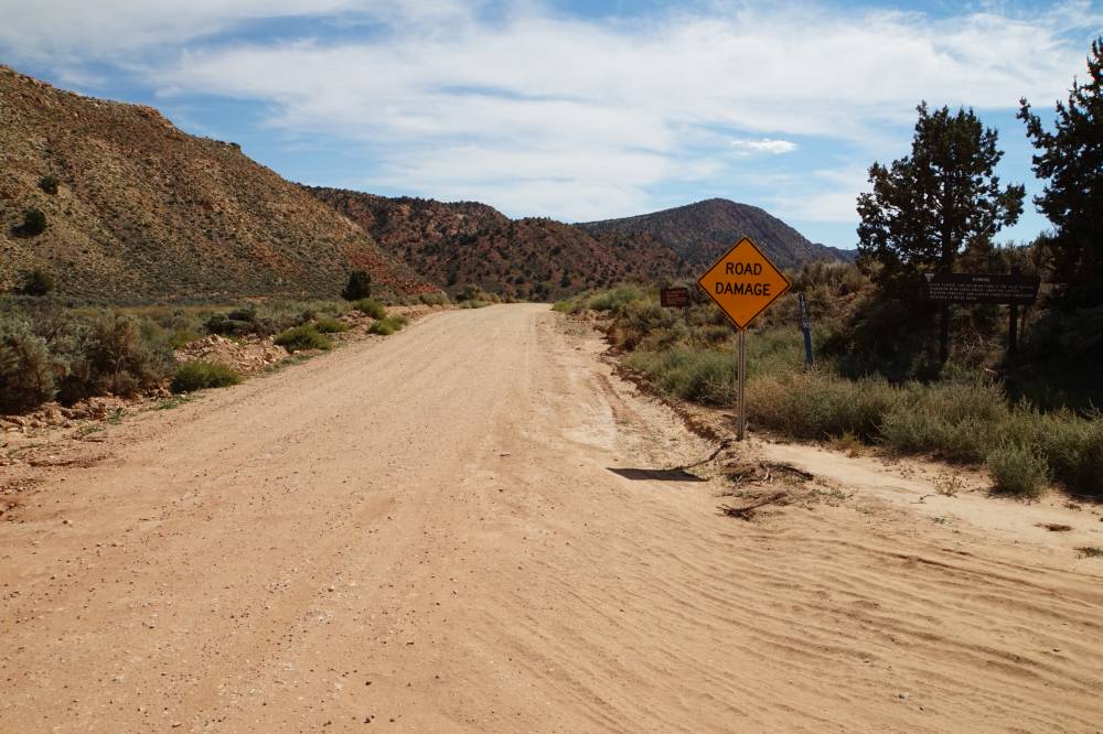 Wir starteten planmäßig 9:00 Uhr und suchten uns den Weg zur Cottonwood Canyon Road. Das sind 47 Meilen schönste Offroad Piste. Nadja wollte ja auch mal in den Genuß kommen. Wir schafften ca. 1/4 des Wegs, dann war die Strecke leider auf Grund eines Springflutschadens geschlossen. Ein frühzeitiger Hinweis hätte uns 2 Stunden gespart. Also mussten wir zurück und einen riesigen Umweg fahren bis in unsere heutige Übernachtungsstadt Kanab. Dort konnten wir unsere Zimmer noch nicht beziehen, also düsten wir gleich weiter zum nächsten Ziel - Flußbett wandern. Leider sind wir einmal zu zeitg abgebogen und fanden uns in einer schweißtreibenden Klettertour in einem Minicanyon wieder. Nach einer Stunde hatten wir die Schnauze voll und drehten um. Leider hatten wir dann auch nicht mehr genug Zeit, den Wire Pass Slot Canyon und die Buckskin Gulch zu sehen - einfach nicht machbar. Der Weg zurück zum Motel dauerte ja auch noch 1,5 Stunden, 12 Meilen waren ja wieder Offroad.