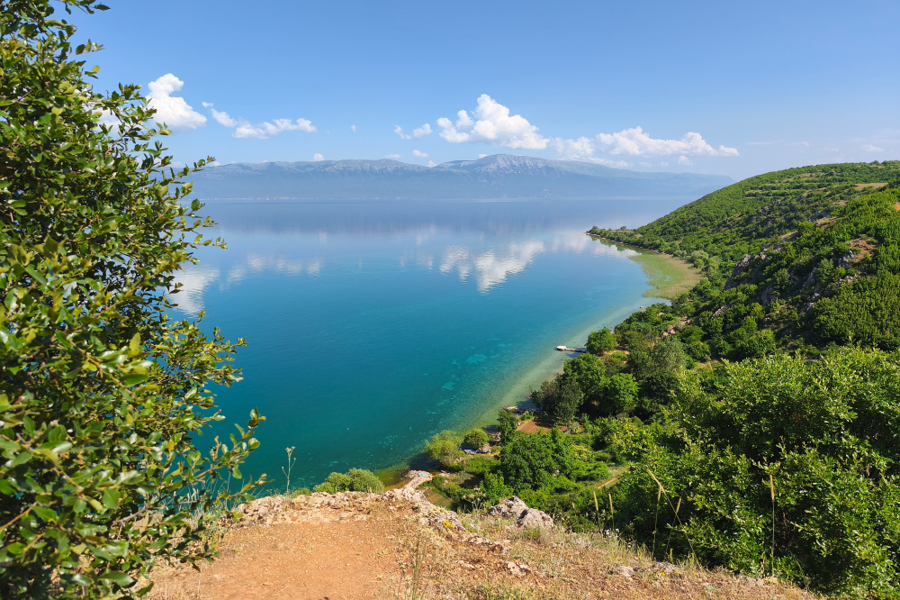 Oberhalb des Dorfes auf einer Felsklippe befindet sich die Ruine einer alten Basilika (leider geschlossen) und ein Wanderweg zu einem der in Albanien vielzähligen Bunker. Man hat hier einen herrlichen Blick über den See auf die nordmazedonischen Berge.