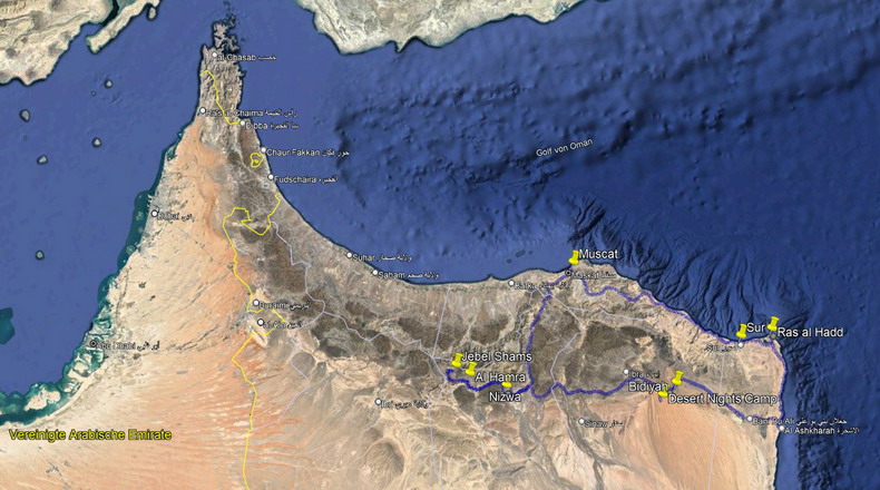 Oman - Der Nordosten Route 2023 (06.11. - 23.11.)Muscat - Sur - Ras al-Hadd - Bidiyah - Nizwa - Al Hamra - Jebel Shams - Muscat