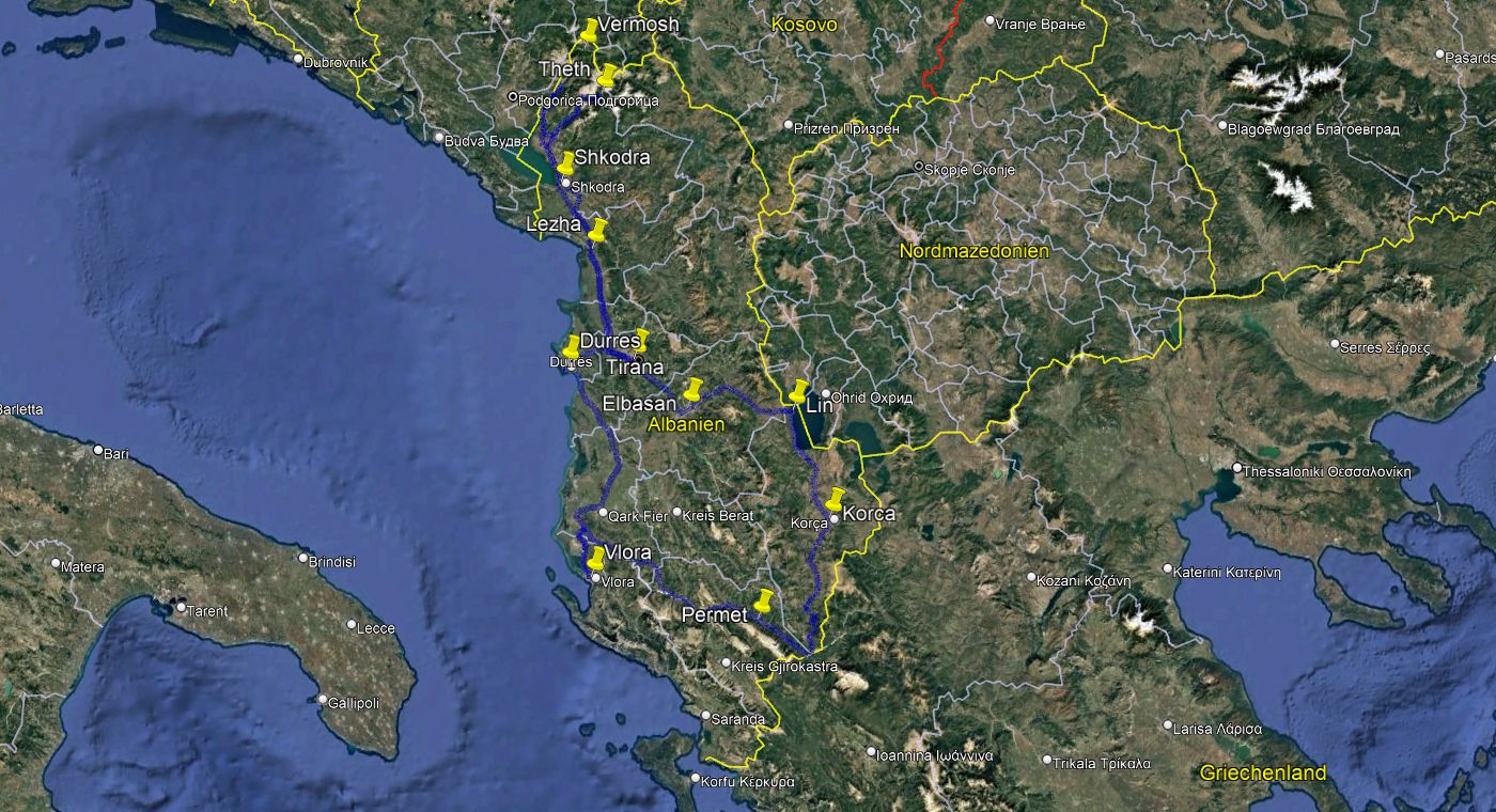 Albanien Route 2025 (03.06. - 18.06.)Tirana - Tamarë - Theth - Shkodra - Lezha - Elbasan - Lin - Korça - Përmet - Vlora - Durrës - Tirana